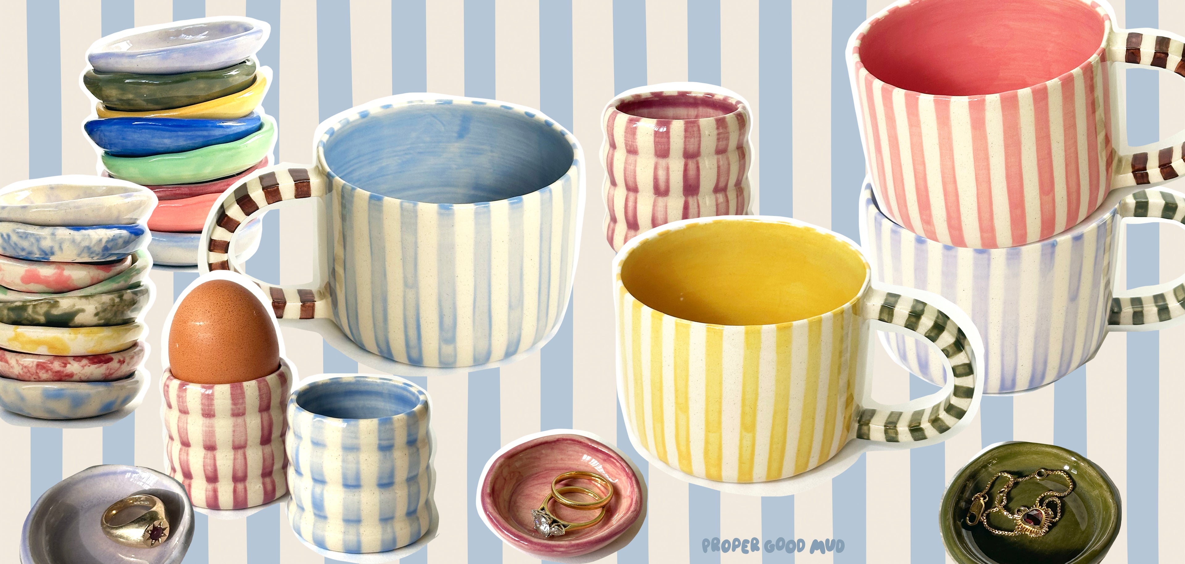 Classic Stripey Mug - Powder Blue & Brown